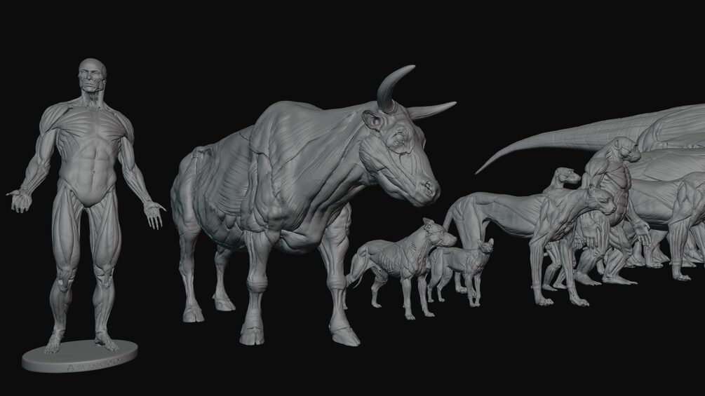 The Ultimate Human & Animal Anatomy Pack Made In ZBrush & ZbrushCore for students & professionals. They can be used for as basemesh's, 3d printing, production and many more.